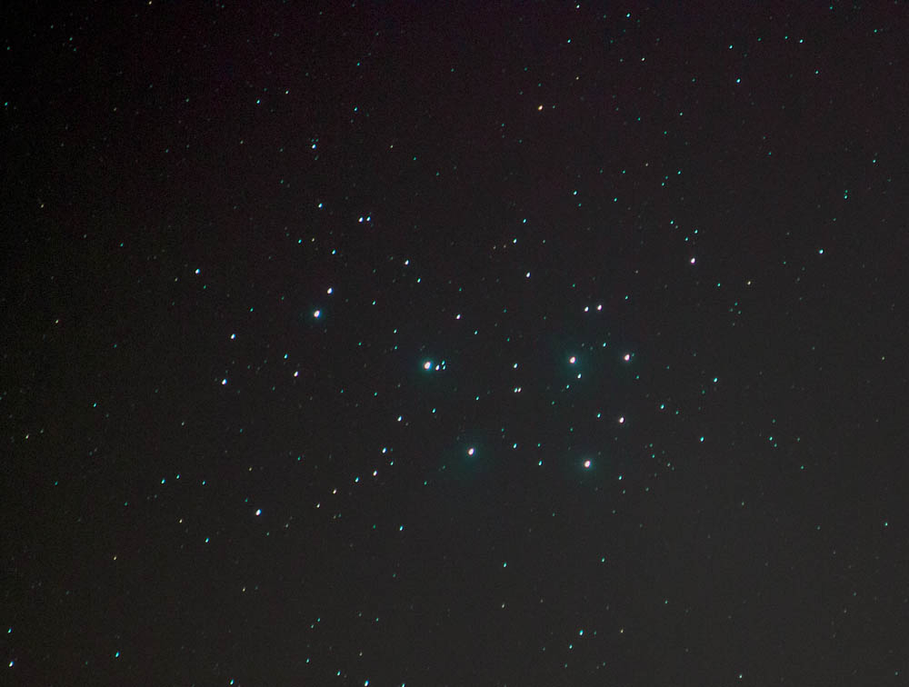 Seulasista 2 min yksittäiskuva. Tähtien ympärillä havaittavissa aavistus sumusta, joka ympäröi tähtiä. Tätäkin pitää joskus valottaa pidempään ja pimeämmässä.